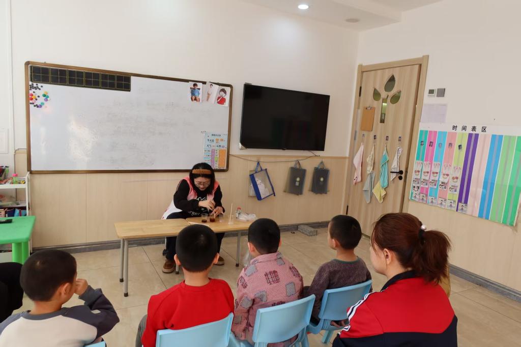 除了精彩的实验演示,志愿者还组织孩子们动手参与实验。在志愿者的指导下,孩子们亲手尝试调配试剂、观察现象,每一次成功的操作,都能换来孩子们开心的笑容。志愿者们全程陪伴在侧,及时给予帮助与鼓励,不仅让孩子们体验到了科学实验的乐趣,更锻炼了他们的动手能力与社交能力。