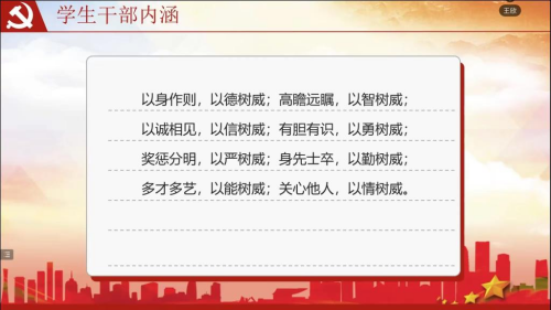 会议伊始,王文静同志以她递交入党申请书为引导,提出了要端正入党动机,从思想上真正入党。一次次的志愿服务逐渐增加她的党性,牢固了她对党的认识,并强调共产党员应不忘初心、牢记使命。接着,她向同学们讲述了自己参加夏令营的经历,阐述了学习离不开努力,也离不开思考,学习永远是员工的天职的观点。最后,王文静同志鼓励全体积极分子应时刻发挥模范作用,在管理自己的同时带动身边更多的人,积极向党组织靠拢。