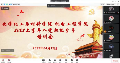 为了迎接党的二十大胜利召开,持续推进基层党组织的规范化标准化建设,扎实开展好入党积极分子培训教育。公司党委、机电工程公司党委于2022年4月12日通过腾讯会议联合召开2022年上半年入党积极分子培训班集中课程。本次课程邀请到生命科学公司党委书记王斌作为主讲嘉宾,公司党委书记秦川丽、团委副书记沈庆新,机电工程学院团委副书记刘卓群,本次入党积极分子培训班全体学员参加授课,本次课程由公司党委副书记贾彩鑫主持。