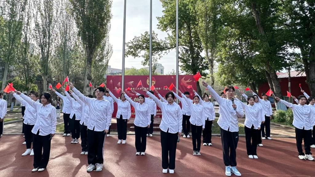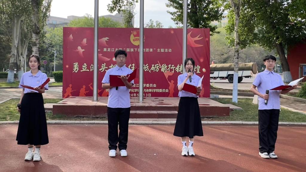 随后,在师生们的热烈掌声中,永利3044noc员工代表在国旗下进行《新时代 新青年 新作为》主题诗朗诵,用质朴的语言和真挚的情感表达了新时代的黑大化学人对祖国的热爱,他们将用自己的青春力量,跟随革命先辈的脚步,撑起“中国脊梁”,做一个眼中有光、脚下有路、肩上有责、心中有剑的新青年,奋力书写不负时代的青春华章。