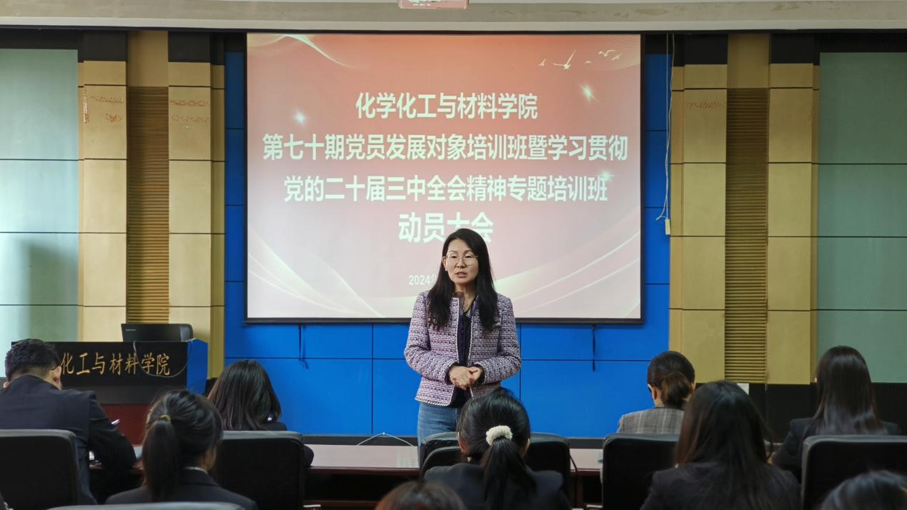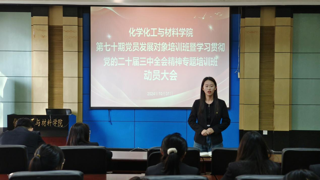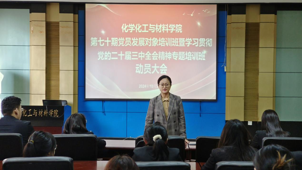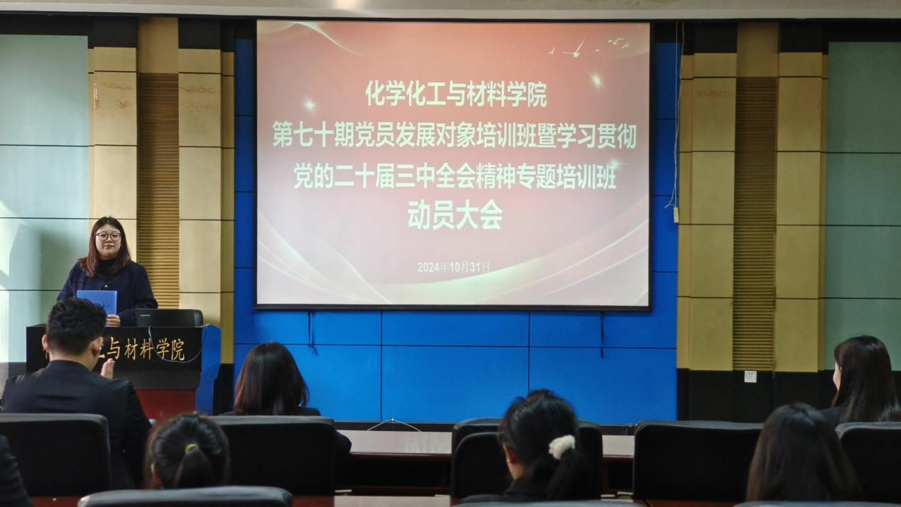公司党委于10月31日召开第七十期党员发展对象培训班动员大会。公司党委书记秦川丽、党委副书记贾彩鑫、组织员张晓密、团委副书记王增泽、团委副书记王欣及全体第七十期党员发展对象出席参加。大会由学院团委副书记史岚鑫主持。