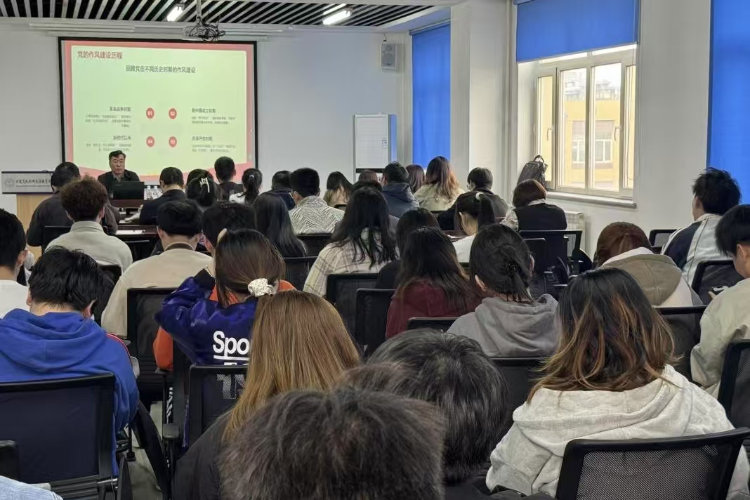 会上,李岩松副教授以贯彻中央八项规定精神为核心,从历史、现实、制度三个逻辑出发,结合实践路径,强调推进作风建设常态化、长效化的必要性,指出需遵循学校部署,深入落实中央八项规定精神。他回顾党的发展历程,阐明作风建设在国家治理现代化中的重要性,通过梳理不同历史阶段的作风建设实践,表明加强作风整治和制度建设是应对挑战、巩固政权、实现治理现代化的关键。他强调要以永远在路上的决心深化作风建设,以优良党风、政风引领社会风尚,为国家发展提供保障。