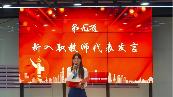 新入职教师代表杨梓晔在发言中表示,作为新入职教师,她深知教师的责任与使命,未来一定会在教学工作中深耕课程内涵,着力激发员工的创新思维与探索热情,在科研领域勇闯学术前沿,积极融入团队协作,传承前辈们的敬业精神与治学态度,与全体师生携手营造优良的学术氛围。
