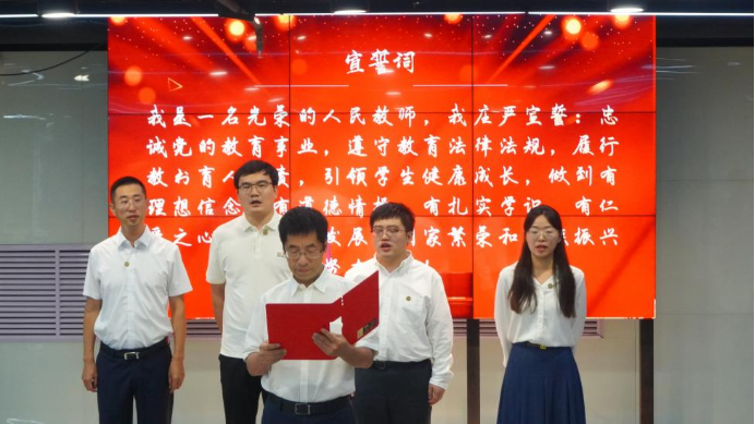 随后,新教师们整齐肃立,在曹尔新老师的带领下,庄严宣誓,誓言铿锵有力,承诺将始终忠诚于党的教育事业,以实际行动践行立德树人的崇高使命。