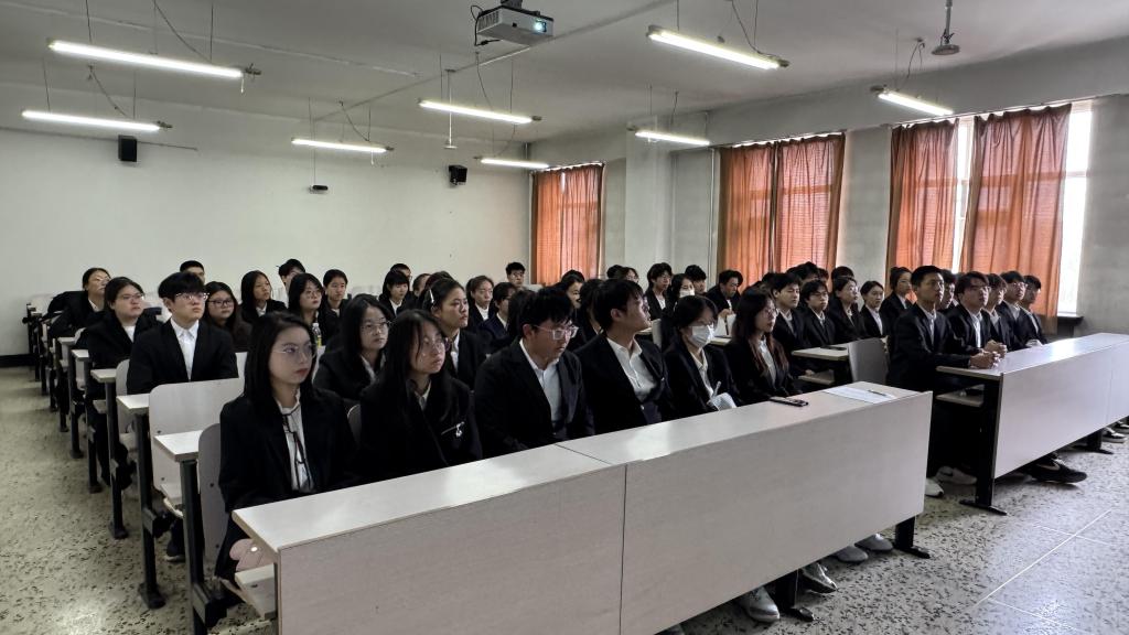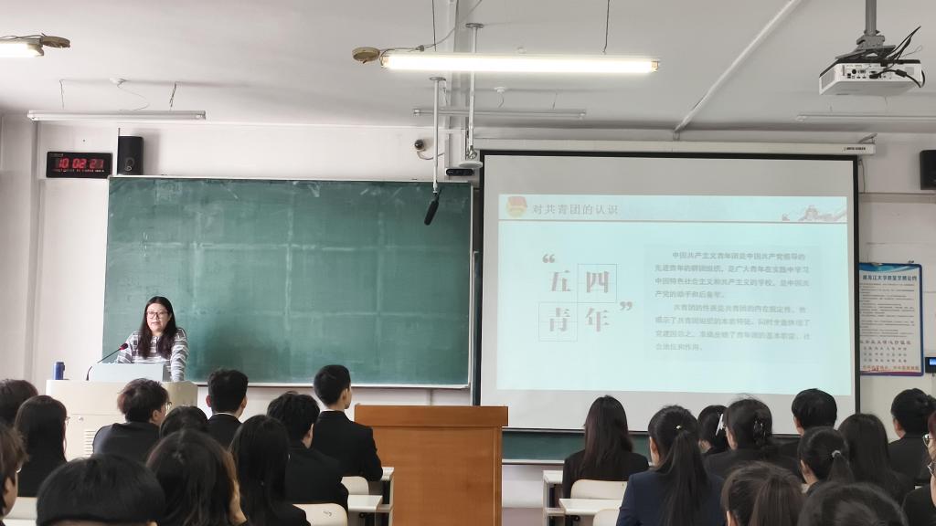 随后,学院团委副书记史岚鑫围绕“共青团基础知识、共青团与党的亲密关系、怎样做合格团员与党的后备军、新时代下青年的品格及使命担当”四个方面展开详细讲解。她指出,全体学员要深化组织属性认知,清晰把握党、团组织定位,厚植家国情怀。同时强调,新时代青年需坚定理想信念,树立对中国特色社会主义的坚定信仰,通过理论学习不断深化对党建知识的理解。在讲解中,她结合我国当前的时代背景,明确中华民族伟大复兴的接力棒已交到青年手中,鼓励在场学员树立奋斗意识,进一步提升思想境界,在政治追求上坚定前行,切实担当青年责任、发挥先锋模范作用。