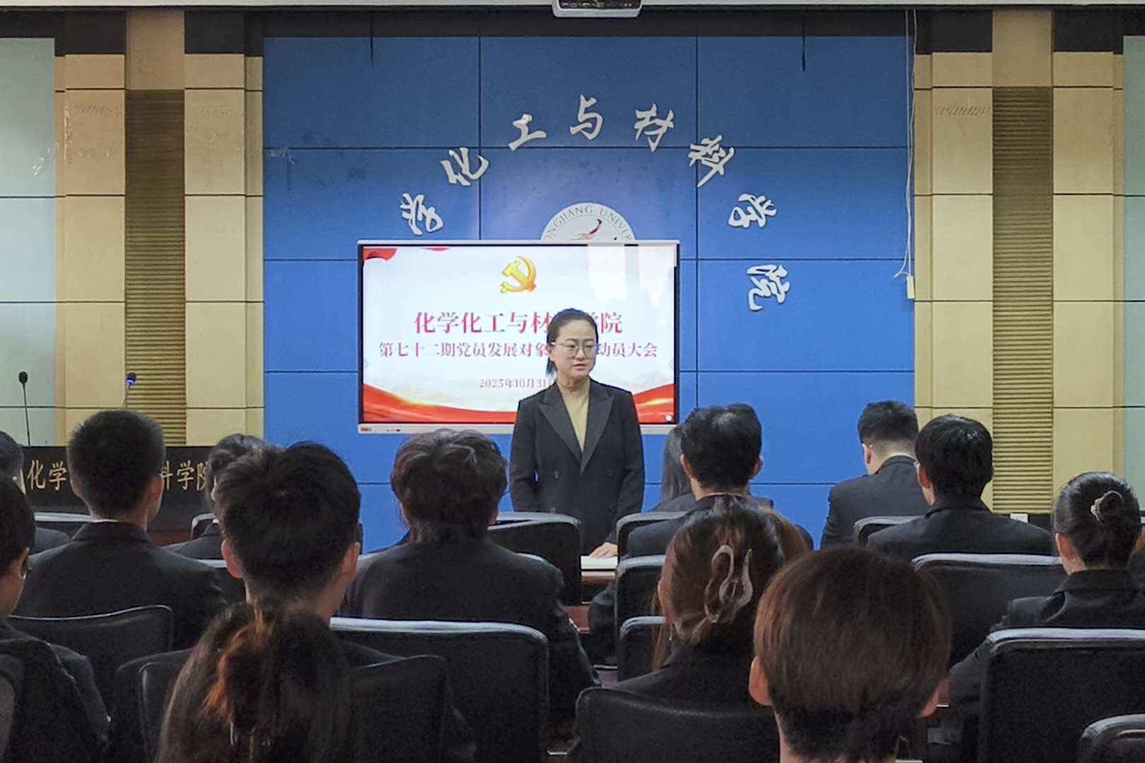 动员大会于10月31日中午召开,公司党委副书记贾彩鑫、组织员张晓密、团委副书记张媛媛、贺俊杰及全体第七十二期党员发展对象出席参加,大会由学院团委副书记周一鸣主持。