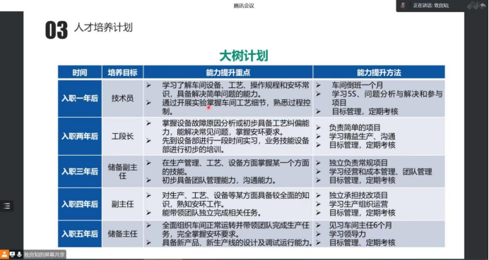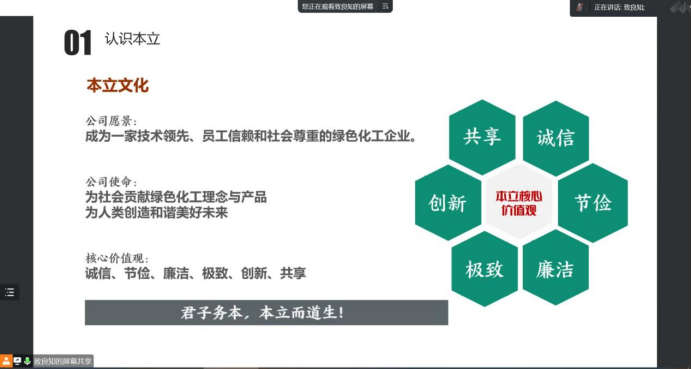 浙江本立科技股份有限公司一直贯彻“清洁生产为主、末端治理为辅”的理念,运用自主研发的核心技术改造传统工艺,继续以为行业提供价廉物美的中间体为己任,为客户提供优质的产品和服务。江先生对毕业生们关心的发展规划、人才培养计划、薪酬福利等方面做了详细的解答。在发展规划方面聚焦行业发展趋势,加大研发投入和技术创新力度,满足客户需求,提高现有产品市场占有率。在人才培养方面有一套健全的体系。