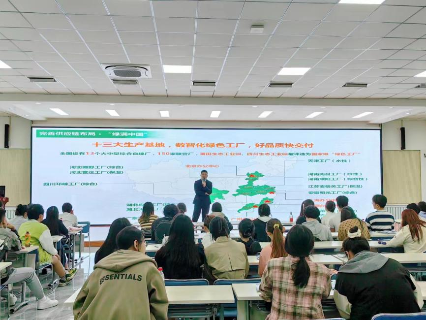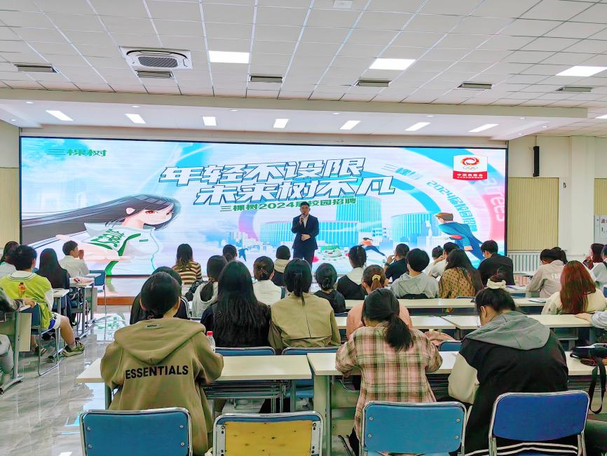 宣讲会上,三棵树涂料股份有限公司宣讲人先播放企业宣传片向同学们展示了企业成长与发展,以及现今规模等,介绍了公司的发展历程和目前公司发展前景,让同学们对企业文化有了一定了解。并且结合 PPT 对相应的岗位进行了详细讲解。随后,宣讲人就人才培养方面进行了详细的讲解,公司会进行员工培训,帮助其完善企业知识,通过考核也可以多通道晋升,推动组织整体向前,带来正向的企业文化,并且与国内外多家顶尖企业合作,具有良好的发展前景。