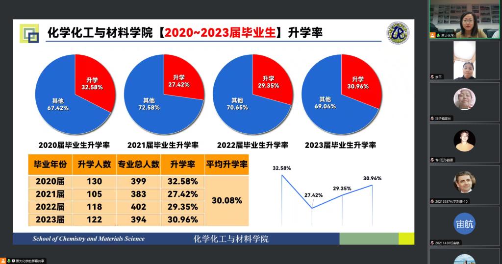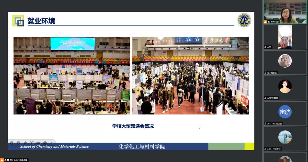 接下来,贾彩鑫老师结合学院本科生、研究生升学就业情况、就业形势与政策、就业环境与优势、就业策略与建议四个方面展开讲述。她根据学院近4年的本科生升学、就业数据进行了专业分析,对处于不同复习阶段的员工给予相适应指导。对于当前的就业形势,她指出目前企业对于化学学科毕业生需求大、岗位多,但仍存在部分员工慢就业、缓就业甚至不就业的情况,部分原因在于家长对于员工情况及未来发展规划不了解、盲目支持。因此需要家长了解员工状况,积极引导员工选择合适发展方向,做到就业动起来、考研学起来。紧接着贾老师针对就业环境、岗位需求向员工及家长展开详细介绍。同时她强调,同学们要充分利用好学校及学院的就业信息资源、认真梳理就业信息,理性思考、抓住机遇、积极应对。
