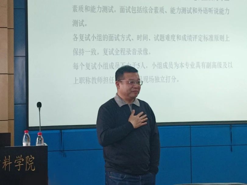 会议伊始,朱宇君老师结合近几年复试招生工作要求,介绍复试形式的内容及流程,分析其利弊,指出复试期间的不确定因素以及应对方法,指出了复试前期准备工作的方向。他强调,面试时要大方自信,随机应变,认真完整回答老师提出的问题。参加考研复试的同学们应提前了解学科信息,掌握专业动态,打好英语口语应试提前量,做到不慌不忙,冷静沉着。