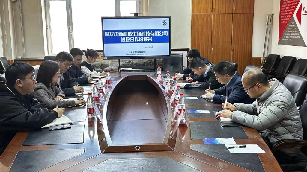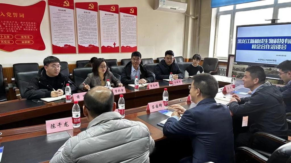 会议伊始,公司党委副书记贾彩鑫向企业介绍学院招生情况、教师情况、专业情况,围绕学院对员工的培养与黑龙江新和成生物科技有限公司总经理吕国锋展开深入交流。副经理李志斌向企业介绍学院教学专业情况,同时对本科生、研究生校企合作培养,实现校企互动提出展望。通过对学院情况的介绍,进一步增强了企业对学院发展及学科培养的了解,为企业更好的吸纳和储备优秀人才提供了有力保障。