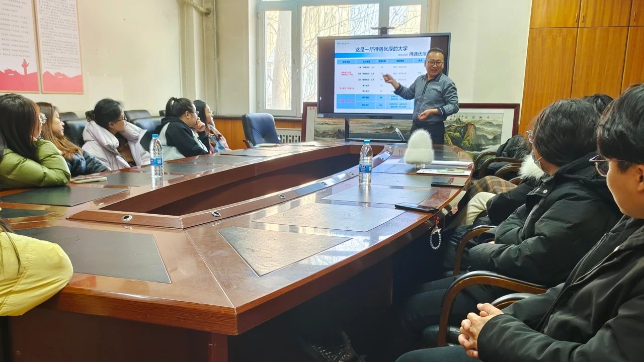 会议伊始,马老师向同学们介绍了塔里木大学的校园环境、发展规划以及招聘计划等相关信息,同时就学校的科研资源、科研现状、人才培养机制进行了详细的讲解,让同学们对学校有了全面的了解。马老师强调学校对人才的需求和重视。他表示,学校积极推进各项事业发展,需要更多优秀的人才加入到学校建设中来,并向同学们发出诚挚的邀请。