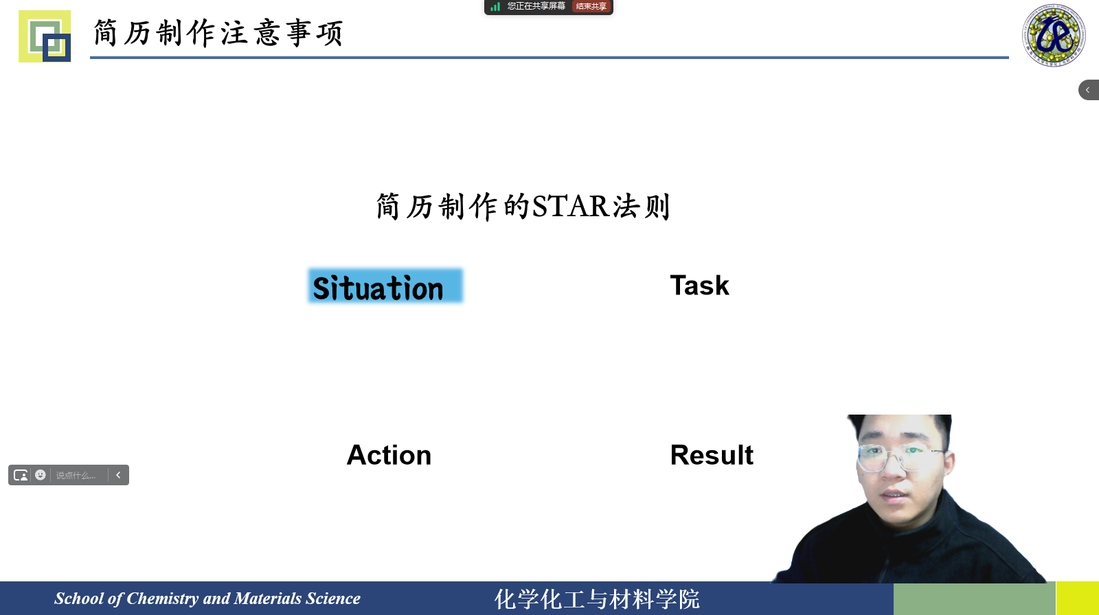 活动伊始,蒋帅强调了当前就业市场的竞争压力以及提升求职能力的重要性,鼓励毕业生们积极参与此次辅导活动,抓住机会提升自己,在求职道路上迈出坚实的步伐。在求职能力提升环节,蒋帅从多个方面展开讲解。首先是简历制作,详细介绍了一份优秀简历应具备的要素,包括清晰的结构、突出的重点、简洁明了的表述等。随后她通过展示优秀简历和存在问题的简历实例并让同学们相互交流,让毕业生们直观地了解如何突出自己的优势和特色,如何针对不同的岗位要求对简历进行调整和优化。