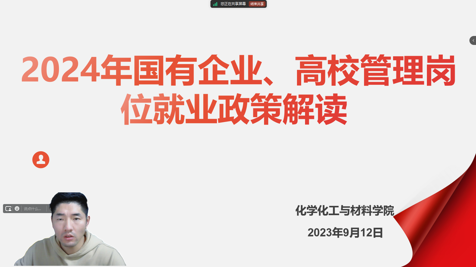 为帮助 2024 届毕业生明晰就业方向,永利3044noc于 2023年9月12日召开国有企业、高校管理职能岗位就业政策讲座,为毕业生们详细分析了这两类岗位的优劣因素,为他们的职业选择提供了有力指导。本次会议由沈庆新主讲,部分2024届毕业生参会。