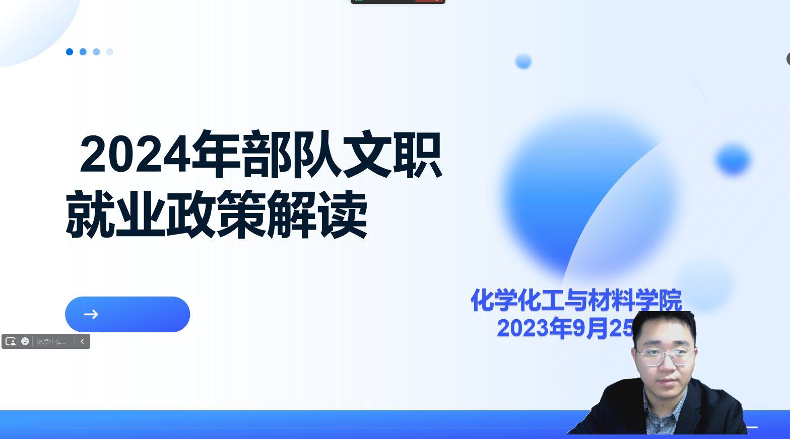2023 年 9 月 25 日,永利3044noc为 2024 届毕业生精心组织了一场意义非凡的部队文职就业政策讲座。本次讲座旨在帮助毕业生全面了解部队文职岗位的优劣因素以及发展前景,为他们的就业选择提供明晰的指引。本次讲座由2024届毕业年级辅导员蒋帅主讲。