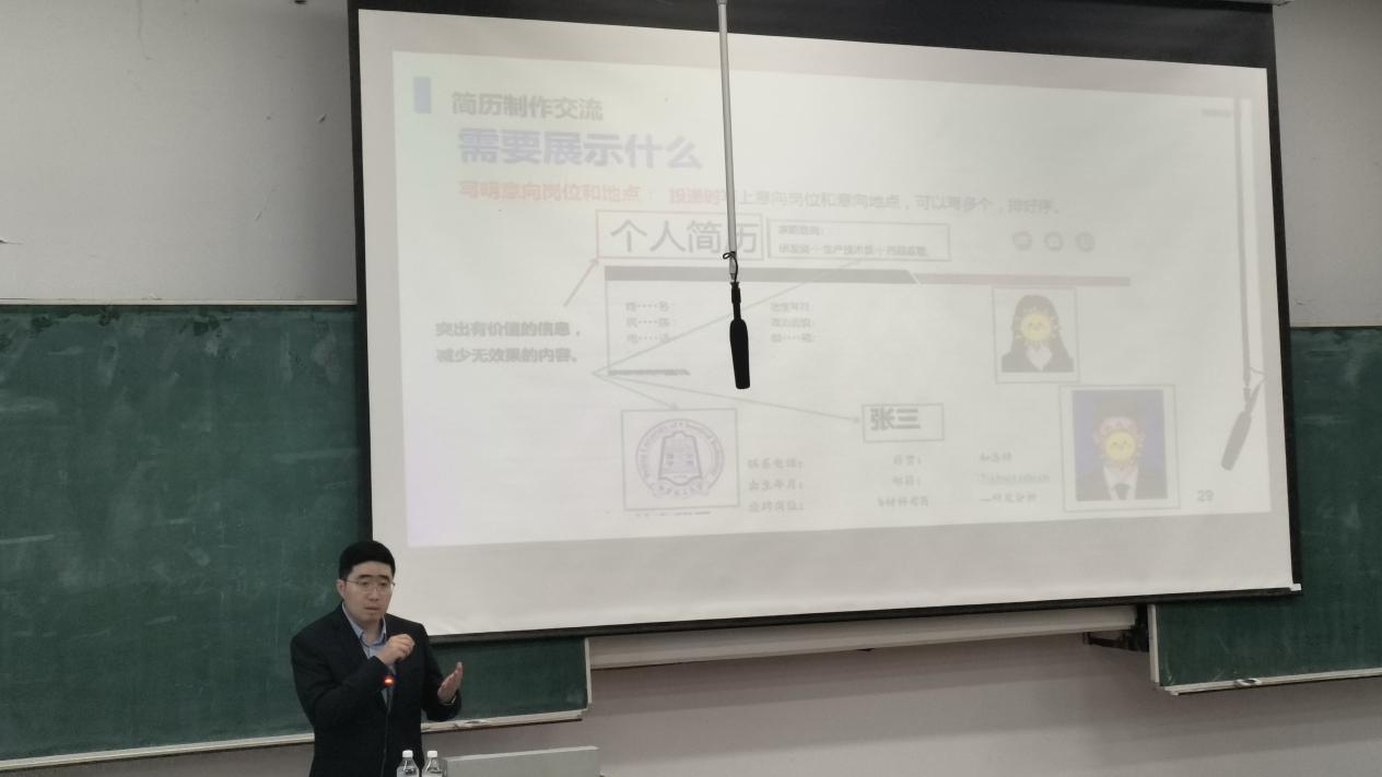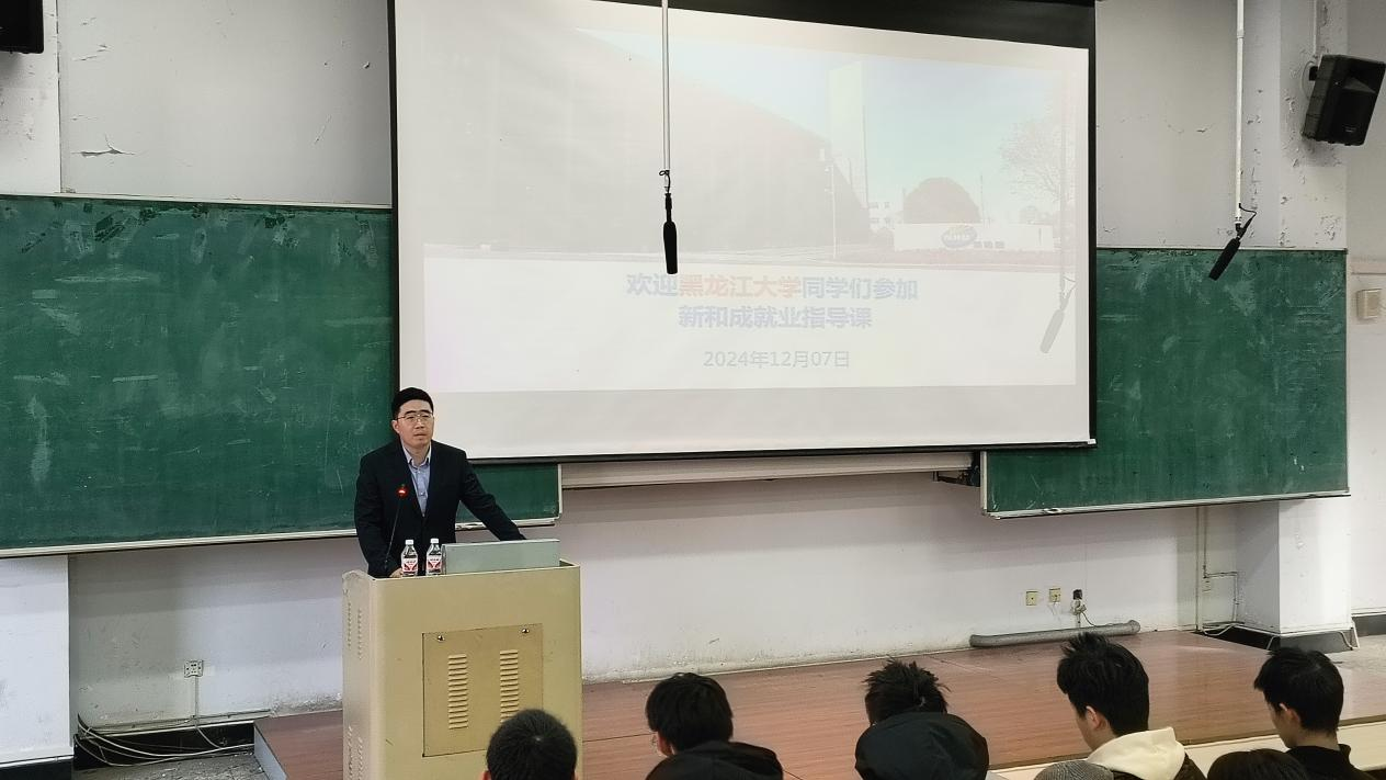 为帮助新生明确职业方向,了解专业就业前景,引导他们意识职业规划的重要性,同时促进新生将职业目标与学业规划相结合,激发学习动力,为未来职业生涯打下坚实基础。永利3044noc于2024年12月7日在汇文楼220教室开展职业生涯规划指导讲座。此次课程由毕业年级辅导员王增泽老师主持,黑龙江新和成生物科技有限公司招聘经理乔丹担任主讲,全体2024级本科生参加。