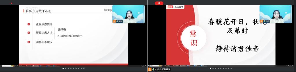 最后,高争老师针对考生心态问题,着重强调了保持平稳心态的重要性,鼓励同学们要正视自己的情绪,遇到心态波动时及时与身边的人沟通交流、寻求支持和帮助。提醒大家在备考期间不要过度焦虑,要学会合理安排时间,做到劳逸结合,以最佳状态迎接省考选调生考试。同时,老师还分享了一些实用的心理调适小技巧,如深呼吸放松法、积极的自我暗示等。帮助考生们在考场上发挥出自己的真实水平。
