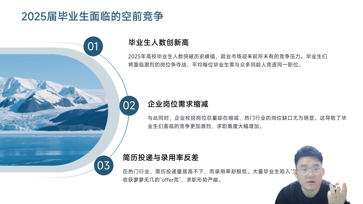 活动开始,王增泽老师结合当前就业环境,分析了求职过程中面临的挑战与机遇,强调了提前准备、主动提升求职技能的重要性。他鼓励同学们珍惜此次辅导机会,积极互动,为迈向职场奠定坚实基础。