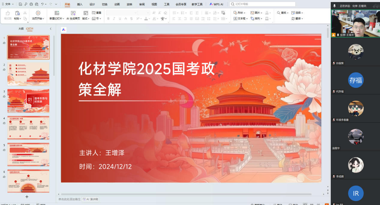 为帮助2025届毕业生准确把握国家公务员考试动态,科学高效备考,永利3044noc于2024年12月11日晚在化学楼会议室举办了国家公务员考试政策解读会。本次讲座由2025届毕业生辅导员王增泽老师主讲,吸引了学院众多有志于报考公务员的毕业生参加。