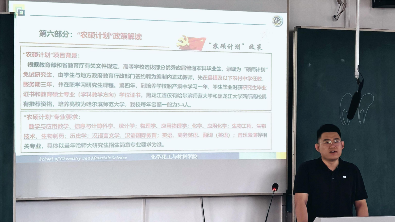 为落实国家师范教育协同提质计划,做好优秀毕业生推荐免试攻读硕士学位工作,永利3044noc于2024年12月25日组织召开了“农村学校教育硕士团队培养计划”(简称“硕师计划”)专项推免政策说明会。说明会由2025届毕业生辅导员王增泽老师在化学楼会议室主讲。