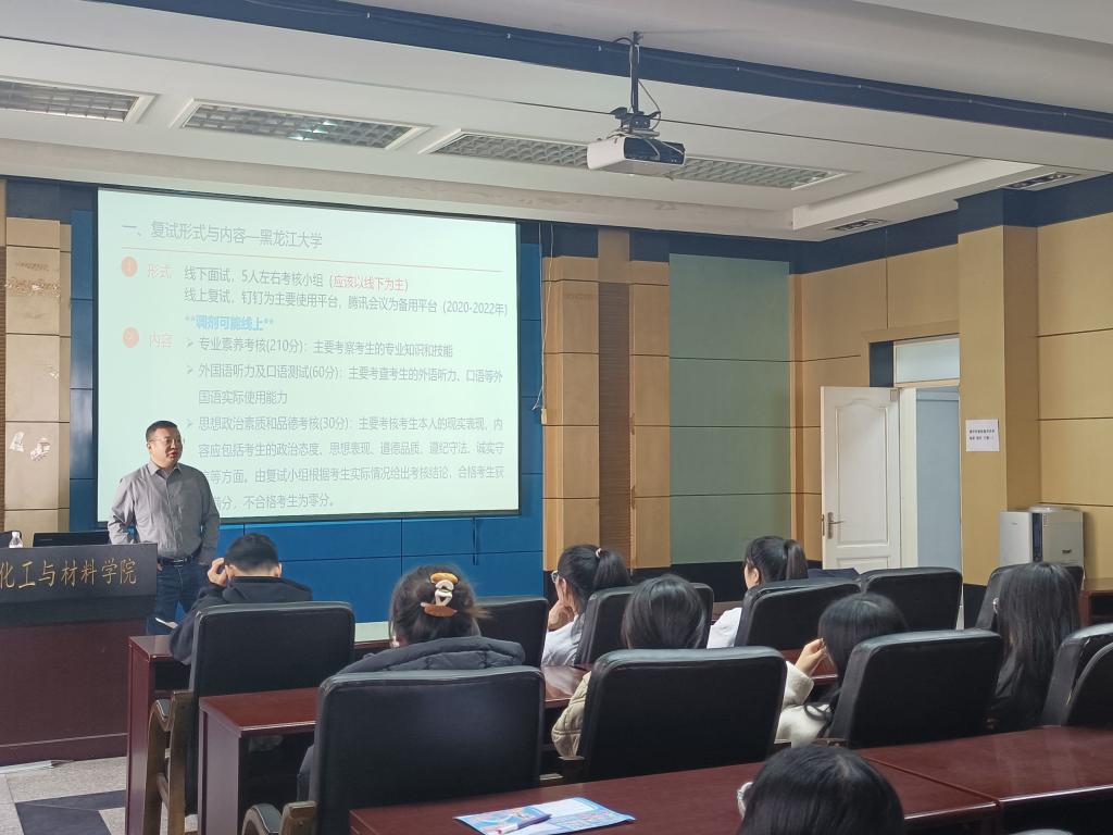 随后,邹金龙教授从专业课复试、心理准备、突发问题三方面进行讲解,理性分析当前考研形势。同时,邹金龙教授向各位学子提醒,累积专业基础词汇,开拓前沿领域视野,梳理复试内容提纲,可以帮助同学们在复试中更好地给出答案。祝愿同学们在接下来的复试中能不负自己夜以继日的努力,取得令自己满意的成绩。