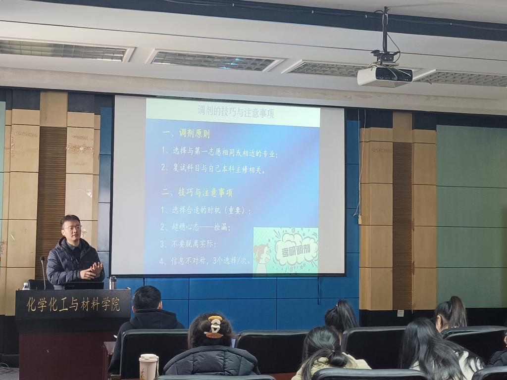 最后,宋相梅老师聚焦于研究生招录过程中的调剂环节,为同学们进行了系统梳理与细致指导。她阐释了调剂的基本定义与意义,指出调剂是考生在未达到第一志愿复试要求或复试未通过时,争取其他招生单位录取机会的重要途径,鼓励大家理性看待、积极把握。
